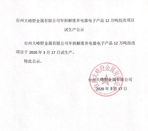 地址:浙江省台州市路桥区金属资源再生产业基地黄金大道5号